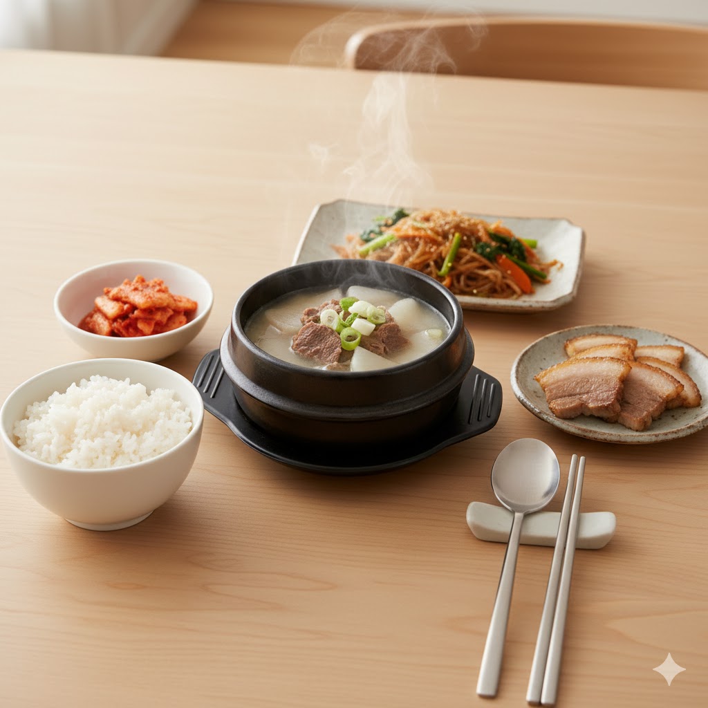 식탁을 보니 잡채와 항정살이 차려져 있었다.